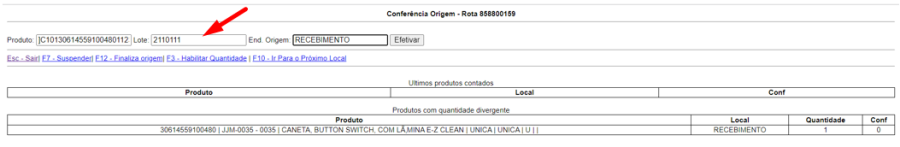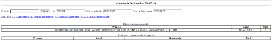 A seguir, vamos fazer a conferência de destino. Informe novamente o código GS1 e observe que os campos das datas de validade e fabricação também foram preenchidos pelo sistema.