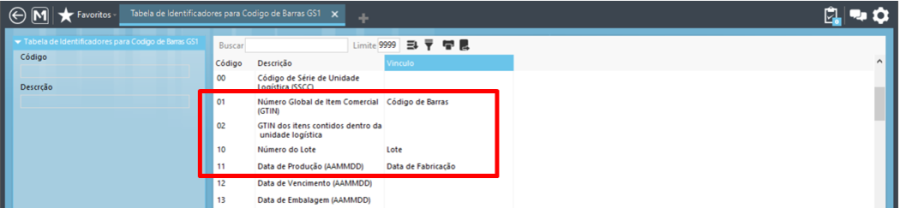 Atenção! Existe uma lista com 135 códigos que podem ser adotados pelos usuários do e-Millennium para compor o código de barras GS1 de seus produtos. Porém, para utilizá-los será necessário fazer a solicitação informando qual o código e qual a informação que deverá ser vinculada a ele, para compor o código de barras do produto.