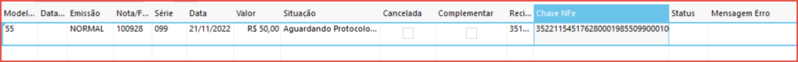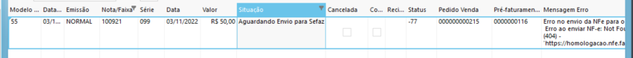 No Status de NF-e, no sistema, podemos verificar que estão constando as mesmas informações: