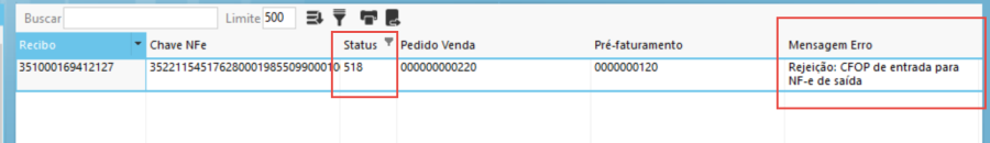 Teste feito para NF-e com erro (retorno antes da mensagem de erro):