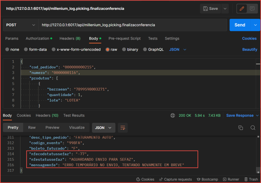 POST: http://127.0.0.1:6017/api/millenium_log.picking.finalizaconferencia