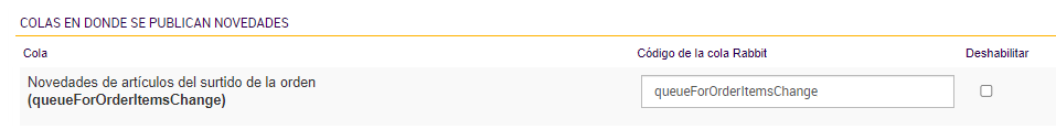 Cada canal, posee asignada una cola RabbitMQ, con el nombre "queueForOrderItemsChange", por ejemplo "queueForOrderItemsChange_online",