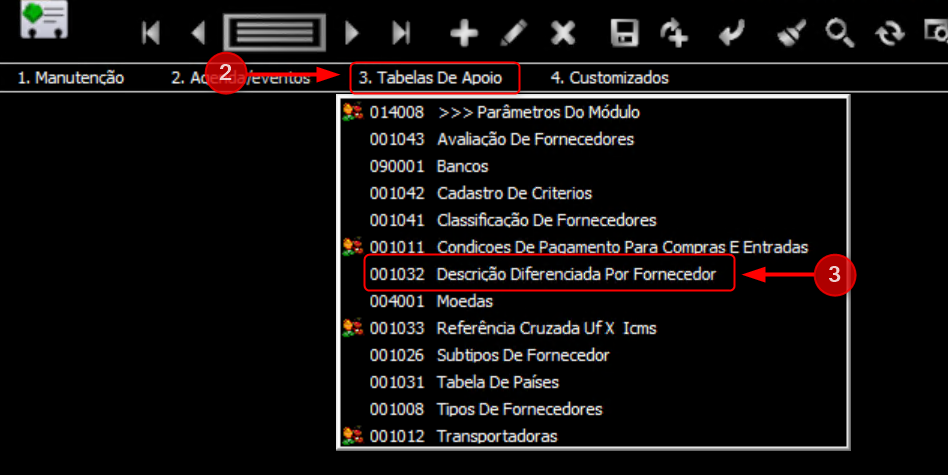 2. Clique em Fornecedores > Tabelas De Apoio;