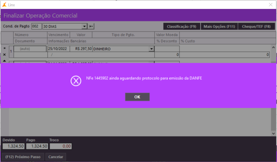 Clique em OK, para iniciar a emissão da nota seguinte.