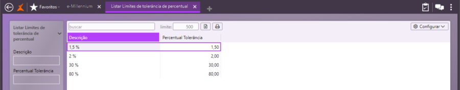 Para que a operação de auditoria dos arquivos XML não seja interrompida devido à pequenas divergências nas informações, por exemplo diferença de centavos no valor total da nota, foi criado um cadastro de tolerância de valores e de quantidades. Com base nessa tolerância, o usuário terá autorização para aprovar o recebimento de notas não estejam exatamente com os mesmos valores e quantidades negociadas com o fornecedor.