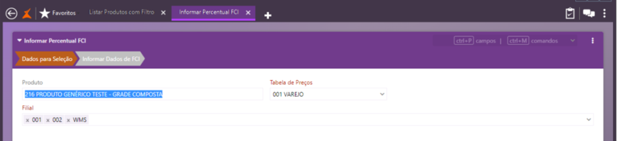 A importação dos dados de FCI diretamente do site da Sefaz poderá ser feita por Filial ou por SKU do produto, quando for o caso.