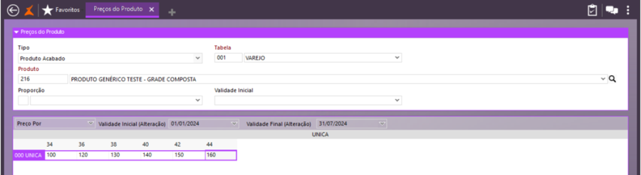 Na tela de consulta, selecione o produto.