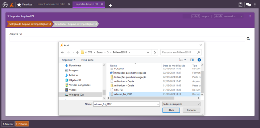 Clique em Próximo, para finalizar a importação e gravar os FCIs no cadastro dos produtos.