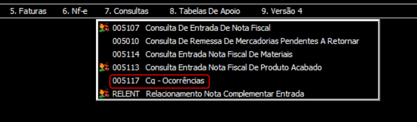 3. Selecione Consultas > 005117 Cq - Ocorrências para abrir a tela.