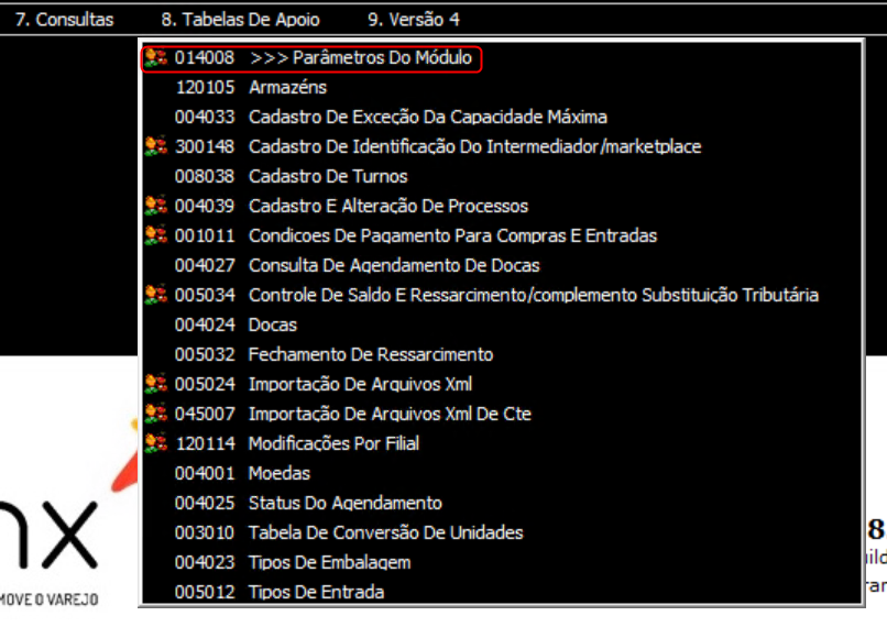 3. Selecione Tabelas De Apoio > 014008 >>> Parâmetros Do Módulo para abrir a tela.
