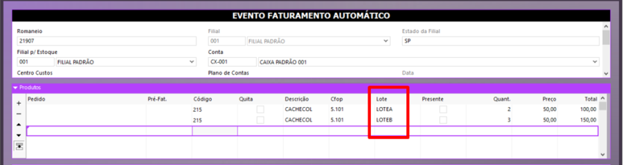 Na guia RastroLotes, ligar o parâmetro Agrupar Lote por Produto.