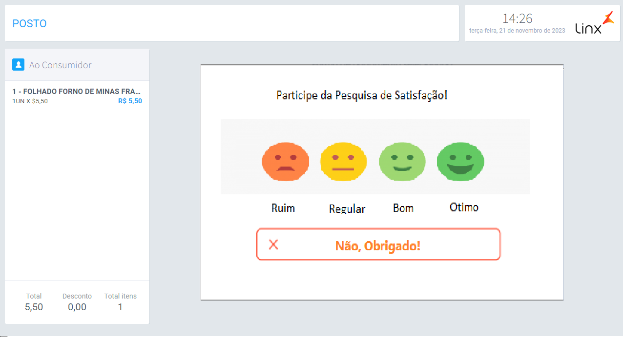 - Ao finalizar uma venda, mesmo que nenhuma opção tenha sido escolhida, a pesquisa será finalizada sem avaliação;