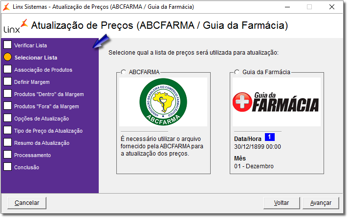 Se a lista selecionada for a ABCFarma verifique como utilizá-la através do artigo Nova atualização de preços pela ABCFarma.