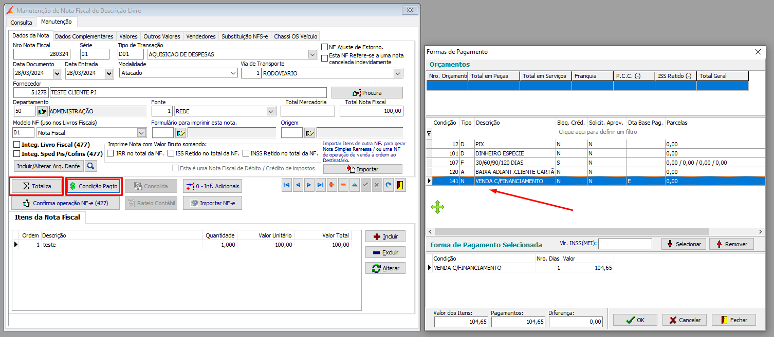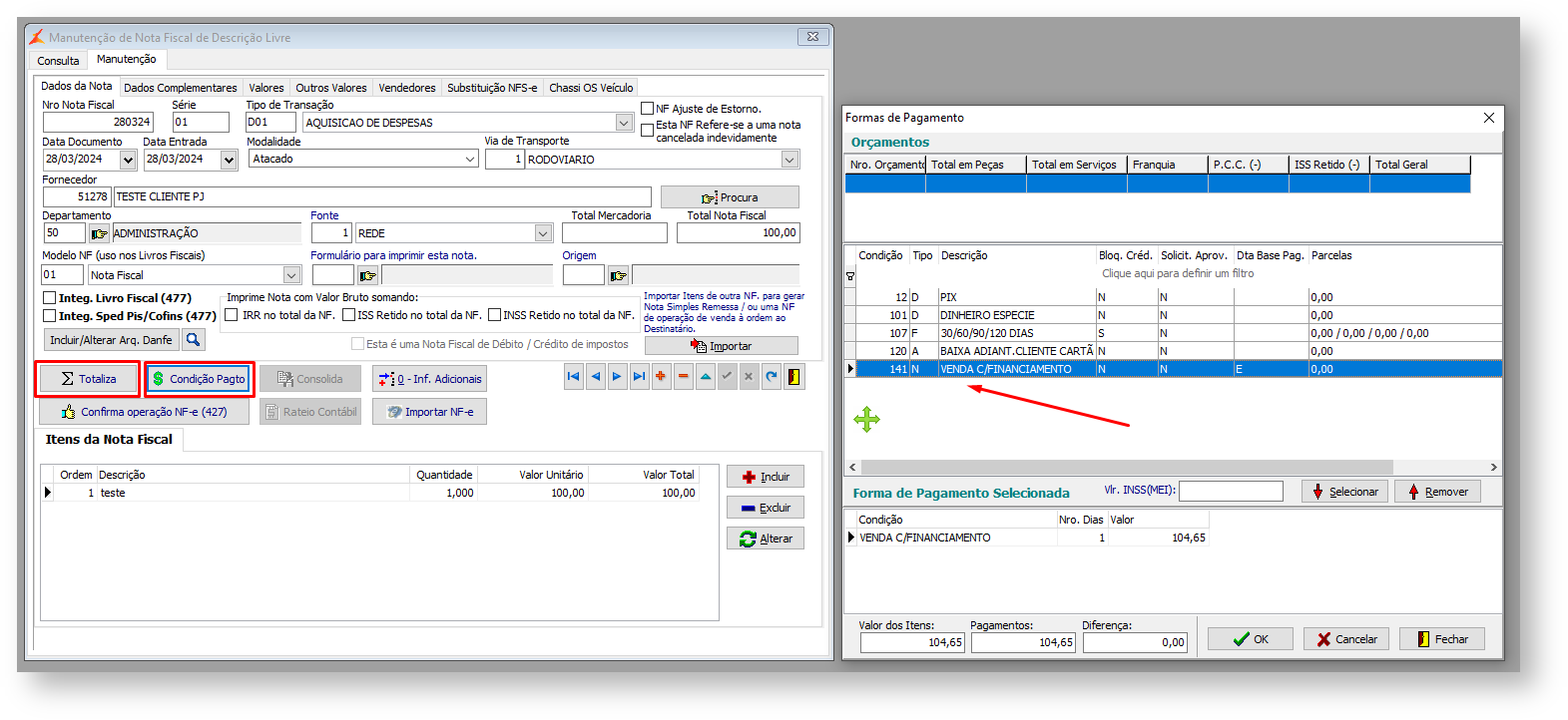 4.5 - Totalize e escolha uma condição de pagamento que gere títulos.