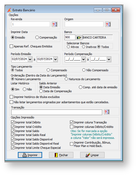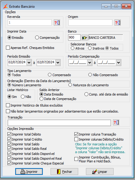 6.1 - Basta informar o dia da baixa no campo "Período Emissão" e o "banco" que o mesmo foi baixado, e após isso, pode emitir o relatório.