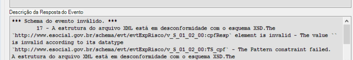 Erro "CPF inválido do responsável pelos registros ambientais" - ao enviar o evento S-2240.