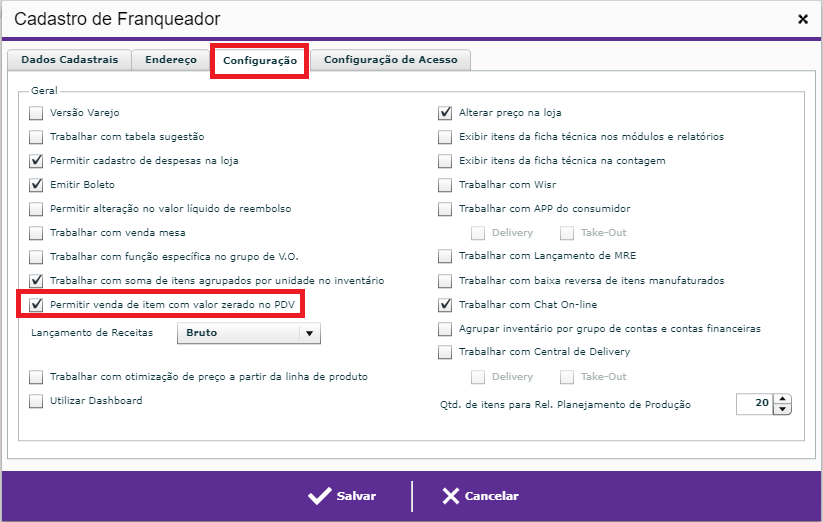 Como o produto Participa Rodízio tem o valor zerado é necessário a função abaixo estar ativada no ADM3.
