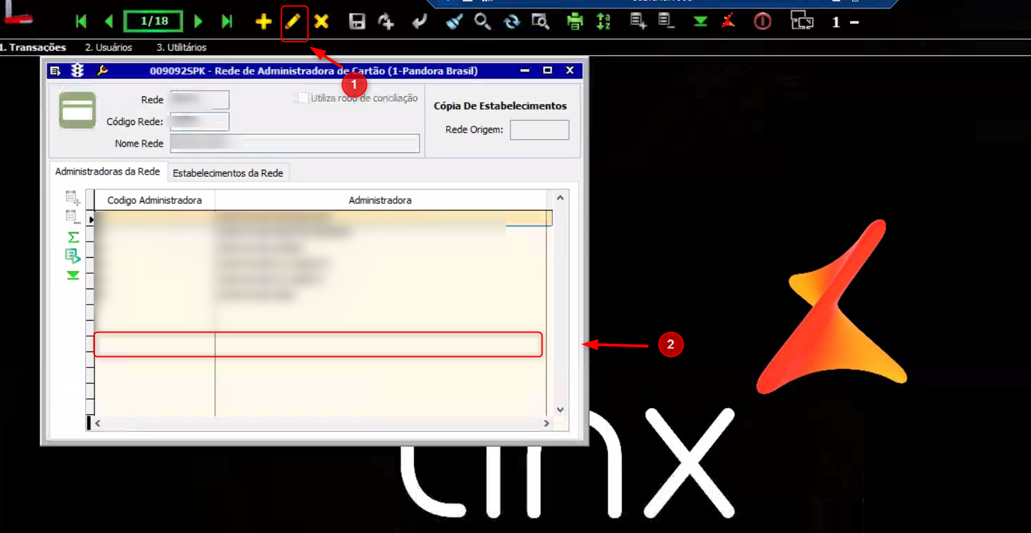 Administradora da Rede: É a listagem de todas as bandeiras associadas a REDE.