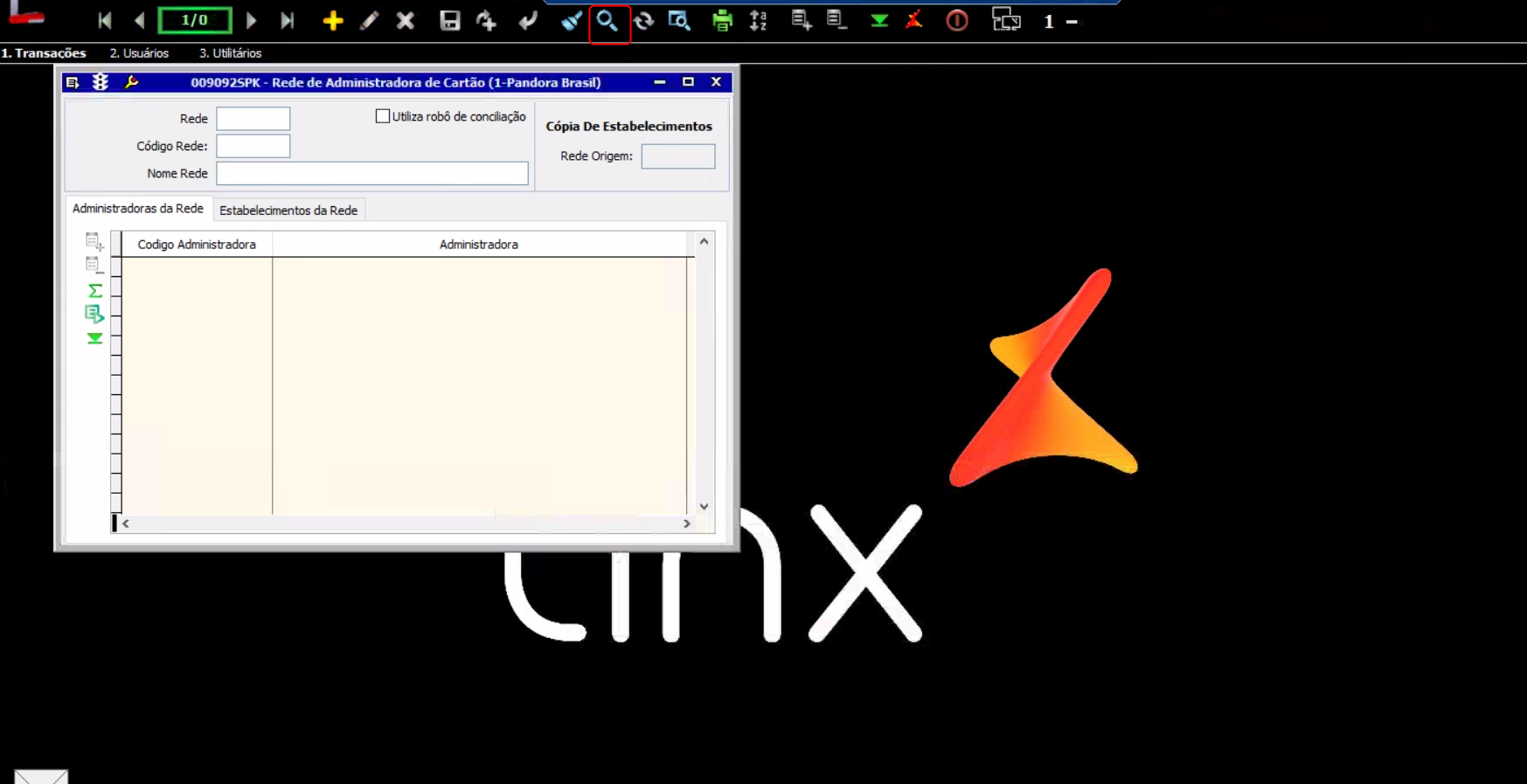 - Acesse a tela 009092 clique no + para adicionar uma nova rede ou clique em pesquisar uma rede existente, conforme abaixo: