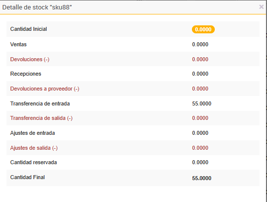 Información Desplegada en el Detalle de Stock