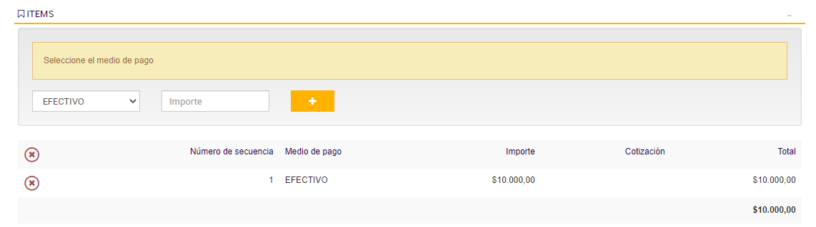 - Se deberá seleccionar el medio de pago e ingresar el importe