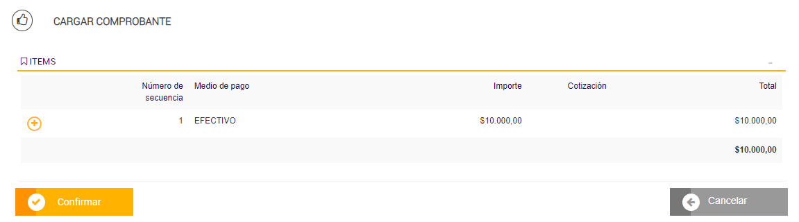El valor incluido en el monto es el que tomará en el Importe Comprobante