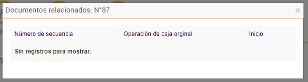 - Si se selecciona la acción, se abrirá un popUp con la lista de documentos que tenga la operación asociados. Si no tiene ninguno, la lista se informa sin registros.