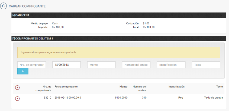 - Se podrán agregar comentarios a la operación y se podrá requerir el ingreso del Número de comprobante", este último puede depender de la configuración si es obligatorio