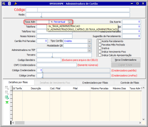 Solução: Para consultar ou editar a taxa de alguma administradora de cartão, realize o seguinte processo: