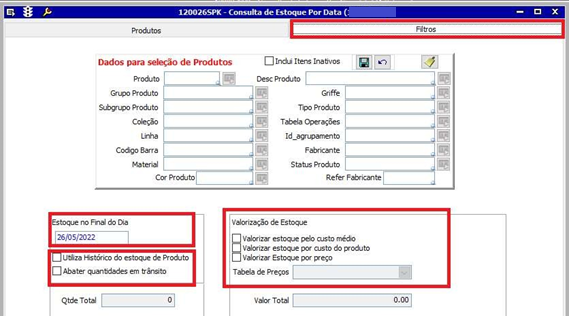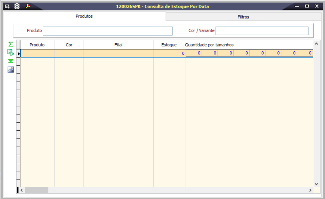 1. Acesse a tela 120026 - Consulta de Estoque por Data;