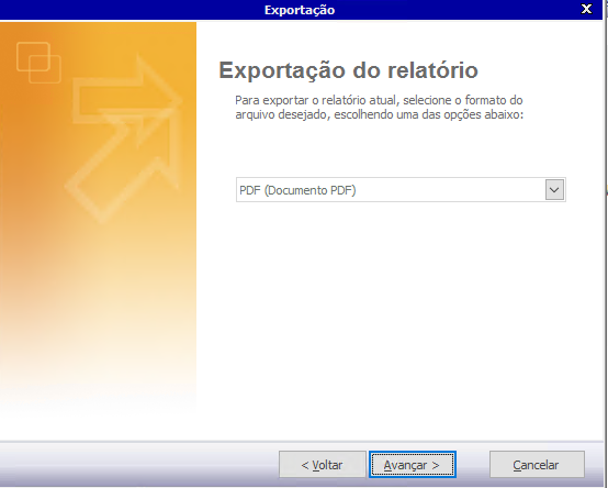 9. Selecione o tipo de arquivo a Exportar e selecione AVANÇAR;