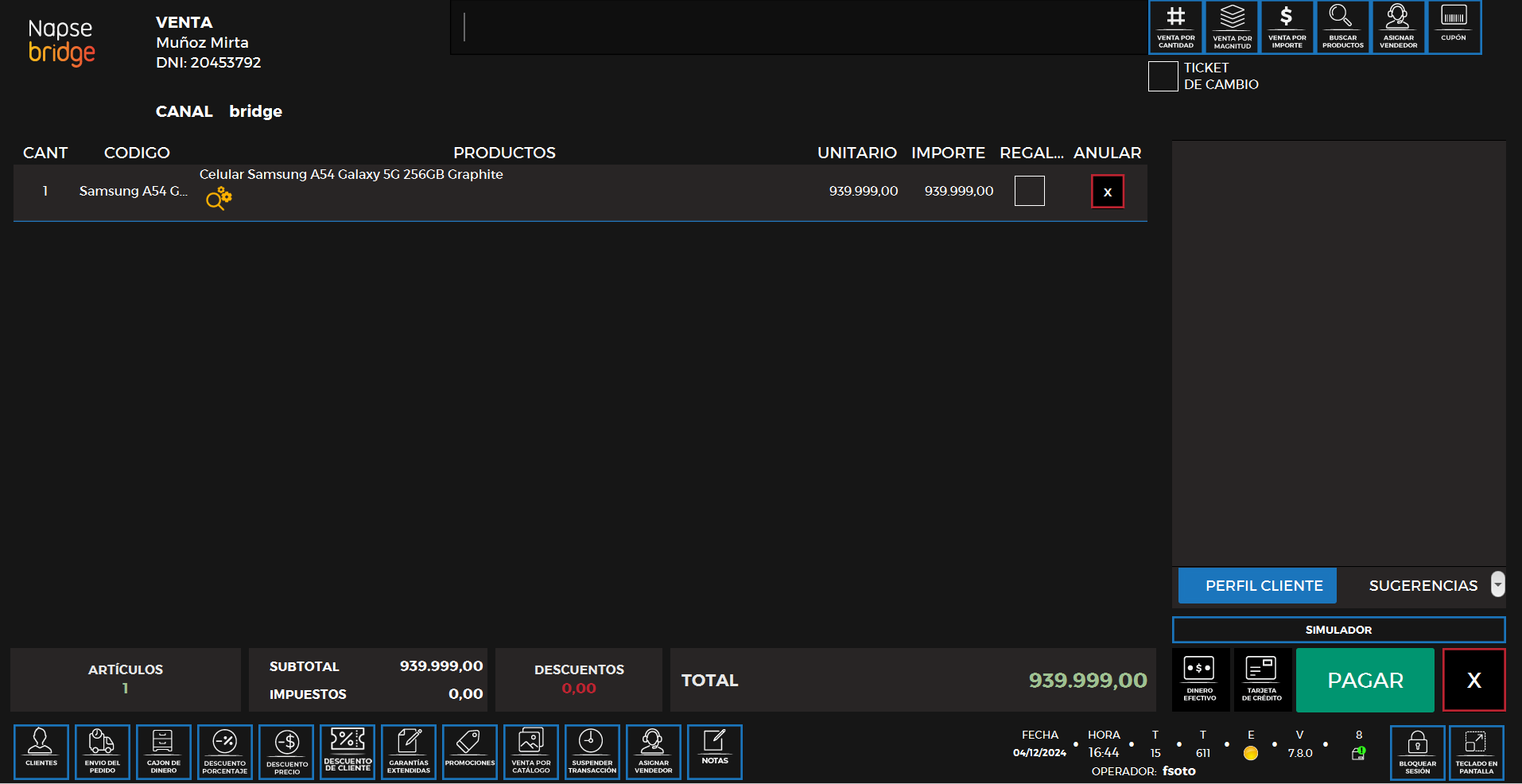• Para comenzar el operador debe iniciar una operación de VENTA en el POS.