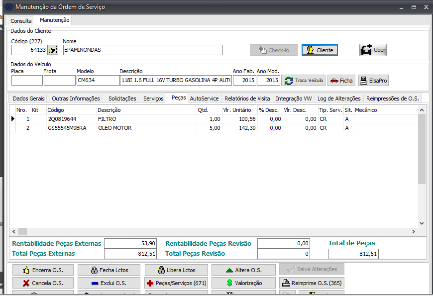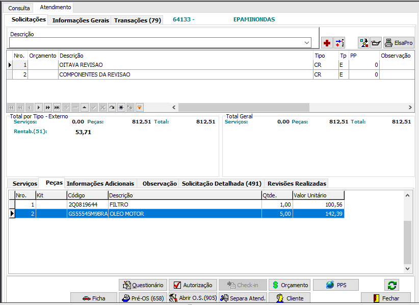 3) Após clique com o botão direito e selecione Abrir Atendimento, no menu de atendimento inclua todas as informações sobre peças e serviços que serão necessários e realize a abertura da ordem de serviço.