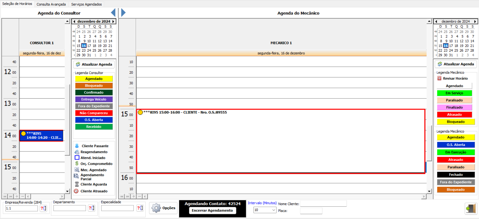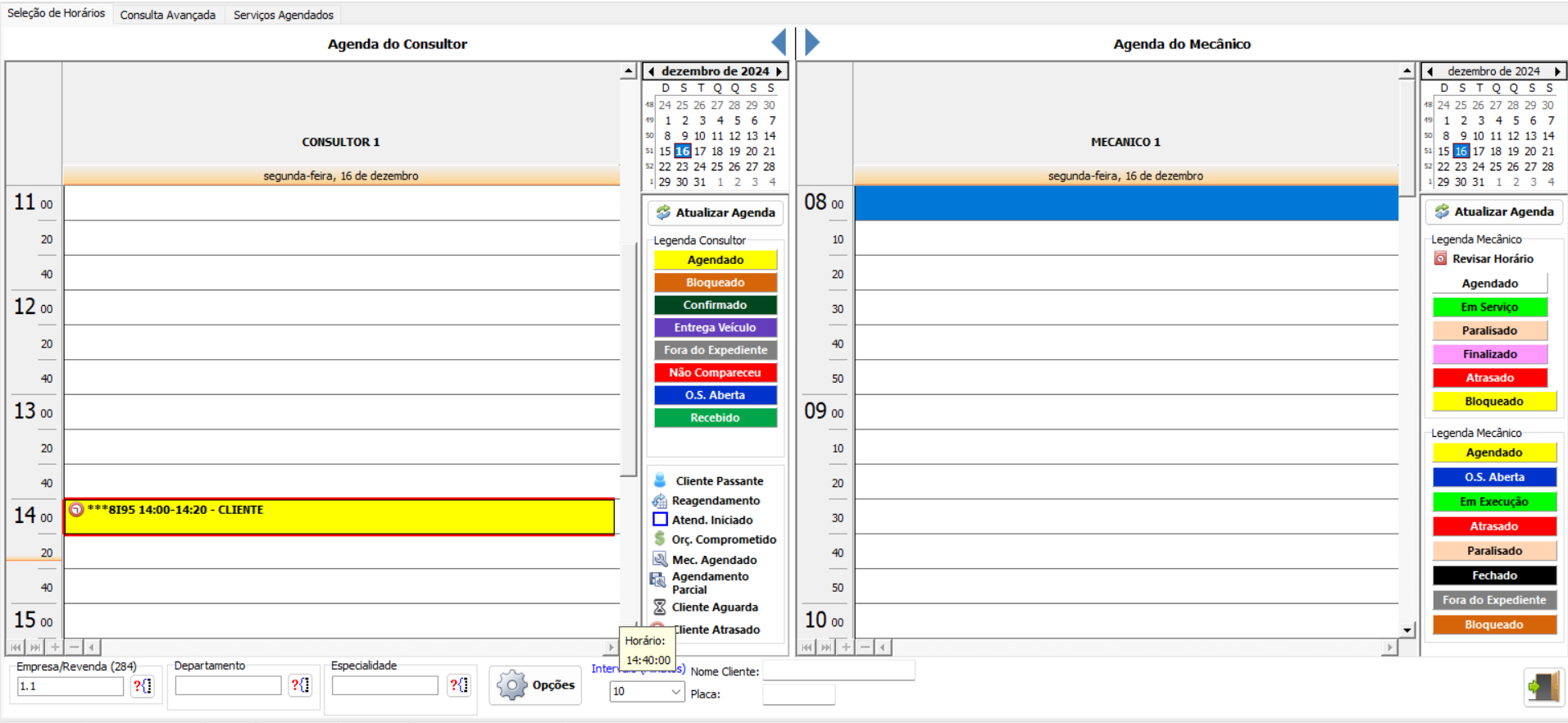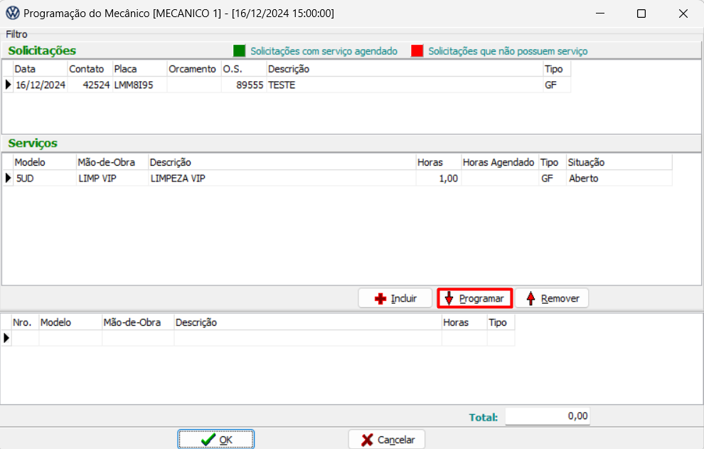 4) Após a abertura da ordem de serviço, ao voltar na agenda da oficina, realizar o duplo click na agenda do mecânico e programar o serviço.