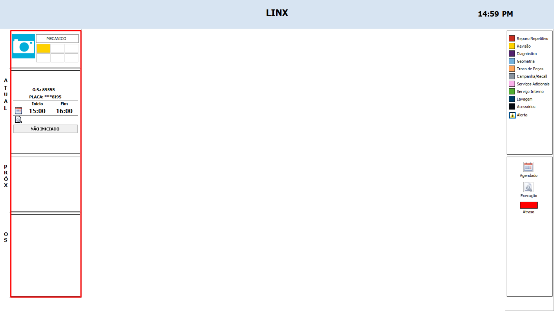 5) Ao exibir a "Agenda dos Mecânicos" no Painel de Monitoramento, será exibido a programação do mecânico conforme a agenda da oficina.
