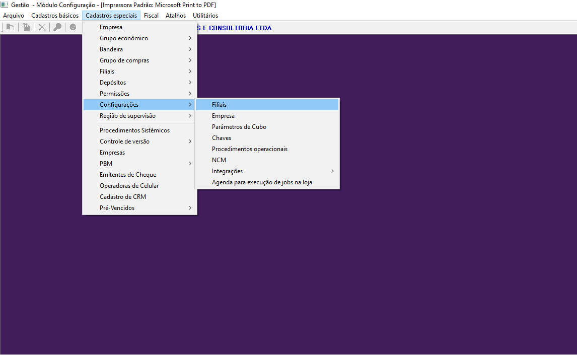 Figura - Configuração de filiais.