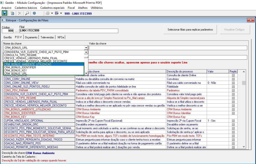 - CRM_BONUS_AMBIENTE_UTILIZACAO selecione uma das opções 0 - HOMOLOGAÇÃO , 1 - PRODUÇÃO e 2 - OUTRO.