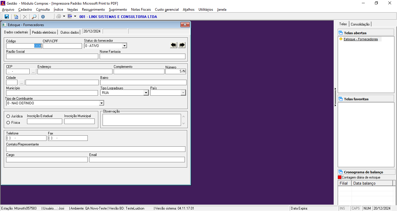 2. Irá abrir a tela do Fornecedores, na aba Dados Cadastrais consulte um fornecedor já cadastrado.
