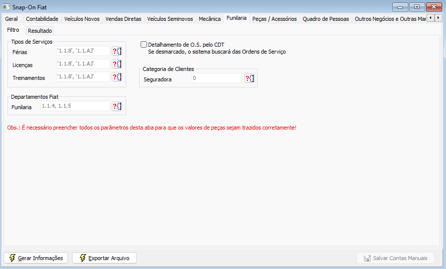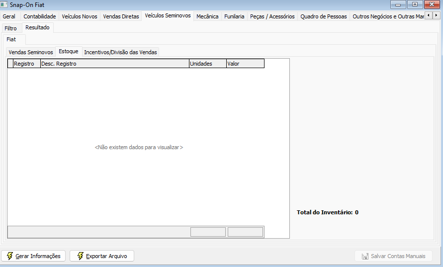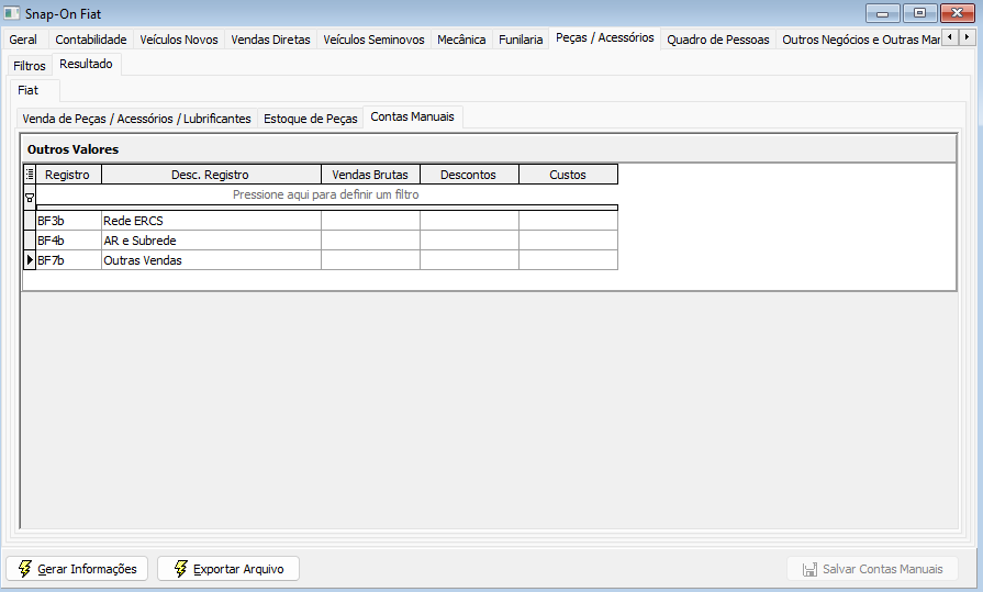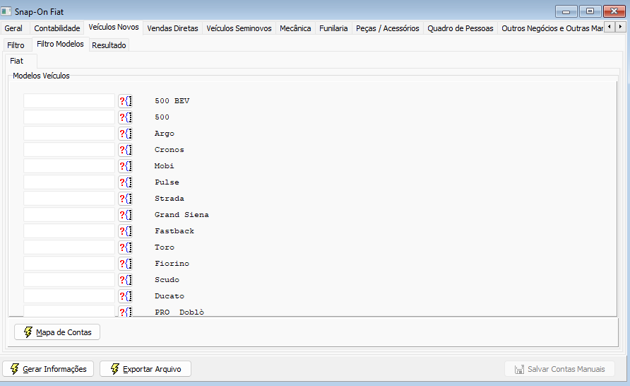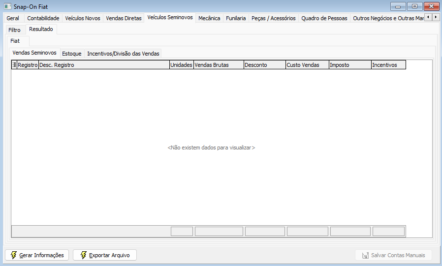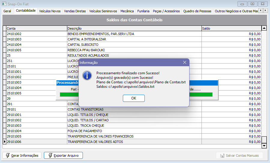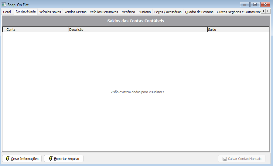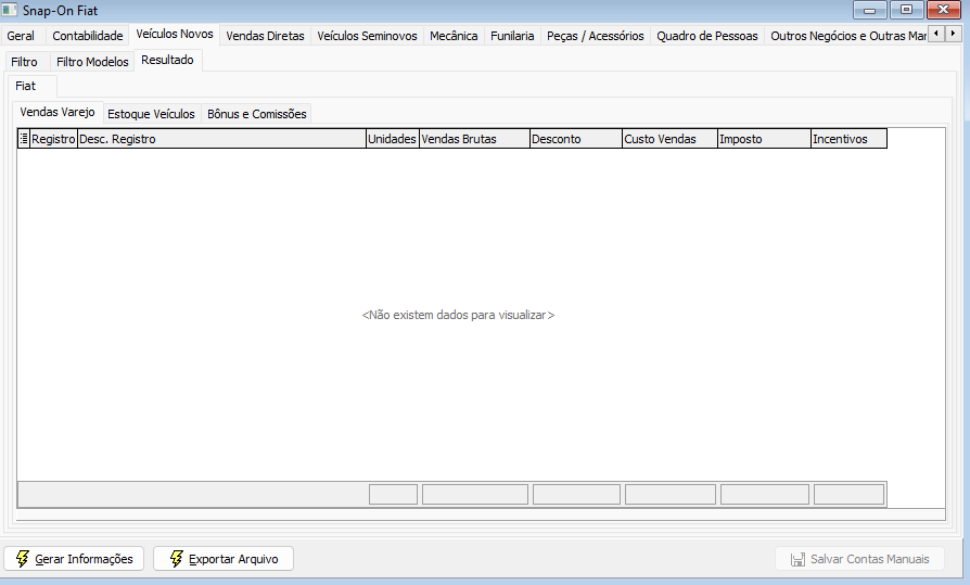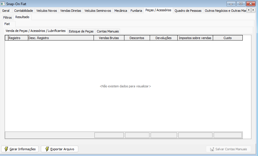 Geração dos arquivos com os dados contábeis e extra contábeis do concessionário para a importação no portal da Snap-On fornecido pela Fiat.