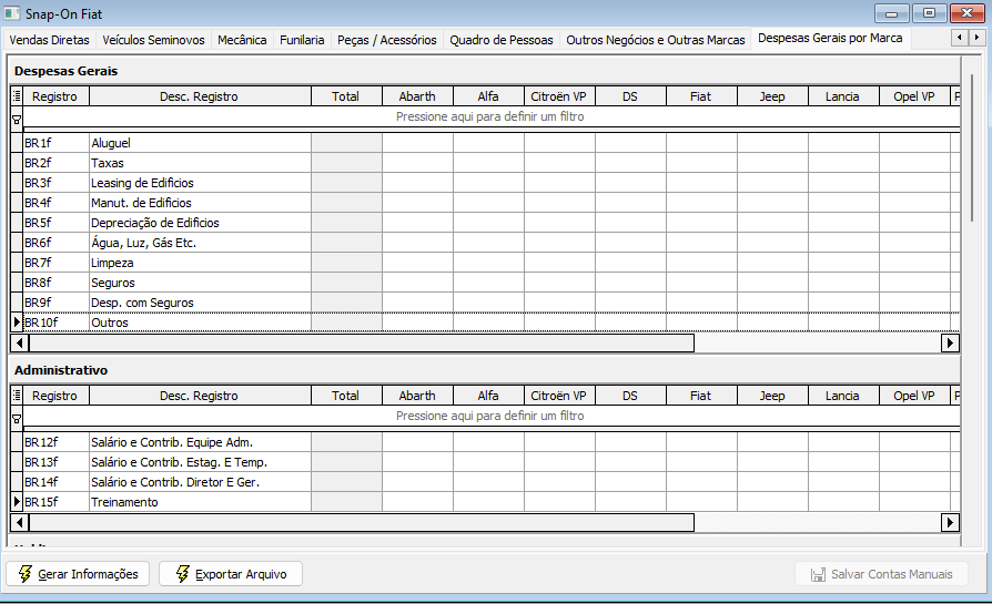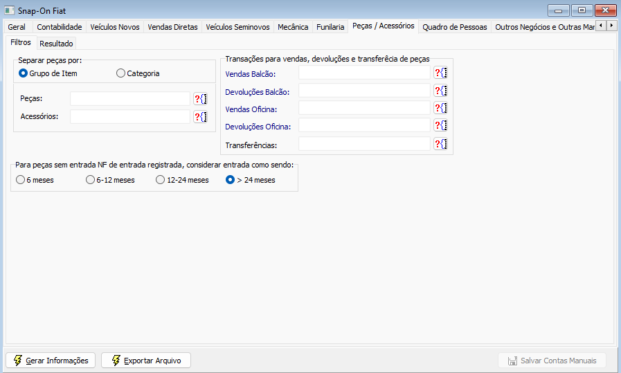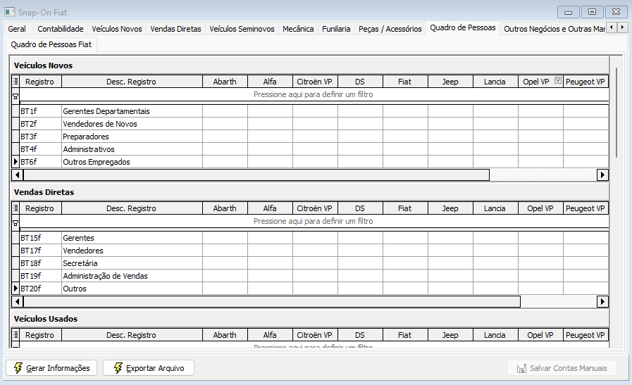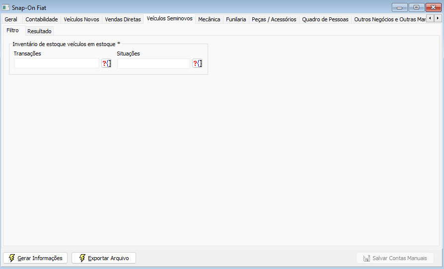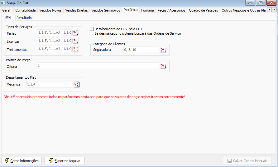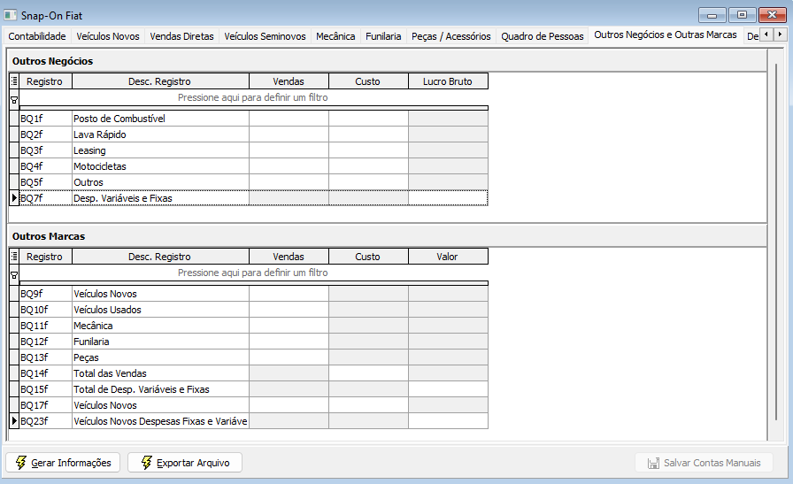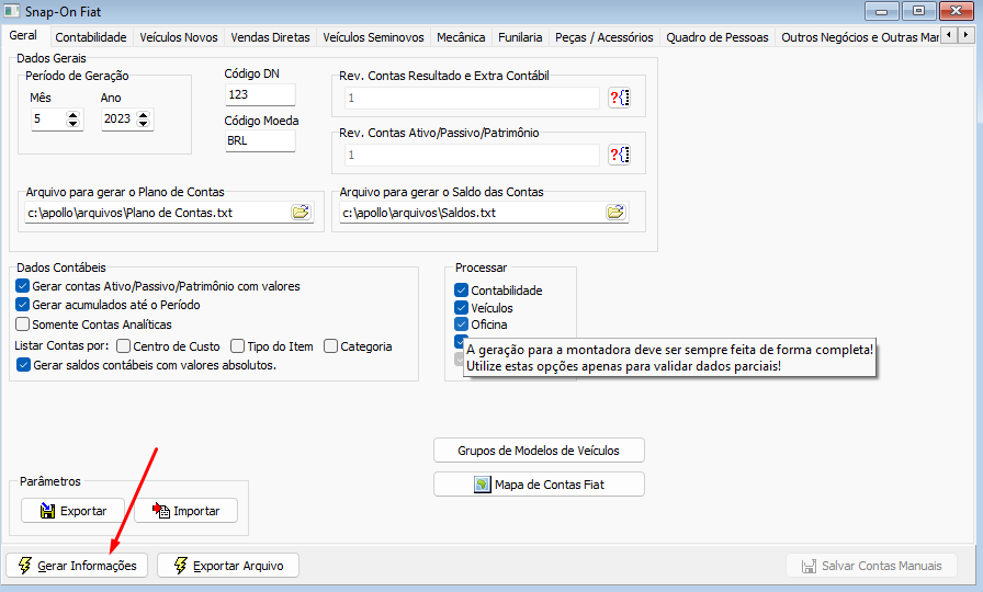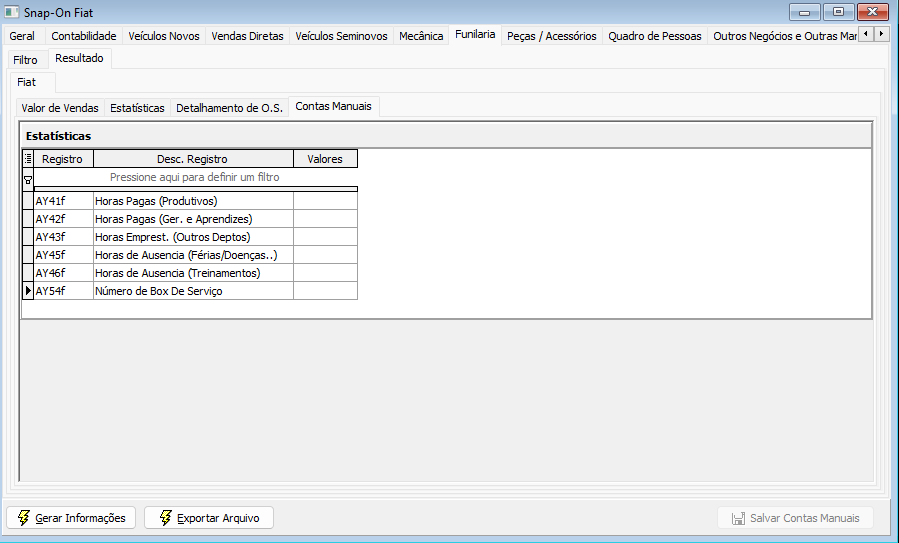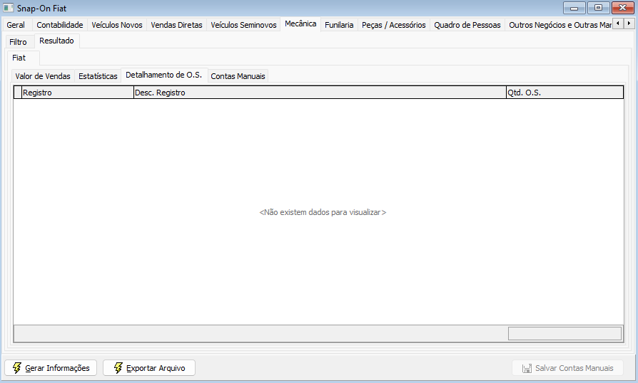 Geração dos arquivos com os dados contábeis e extra contábeis do concessionário para a importação no portal da Snap-On fornecido pela Fiat.