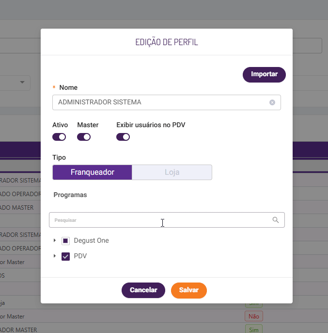 • Versão Degust PDV 48.05 ou acima.