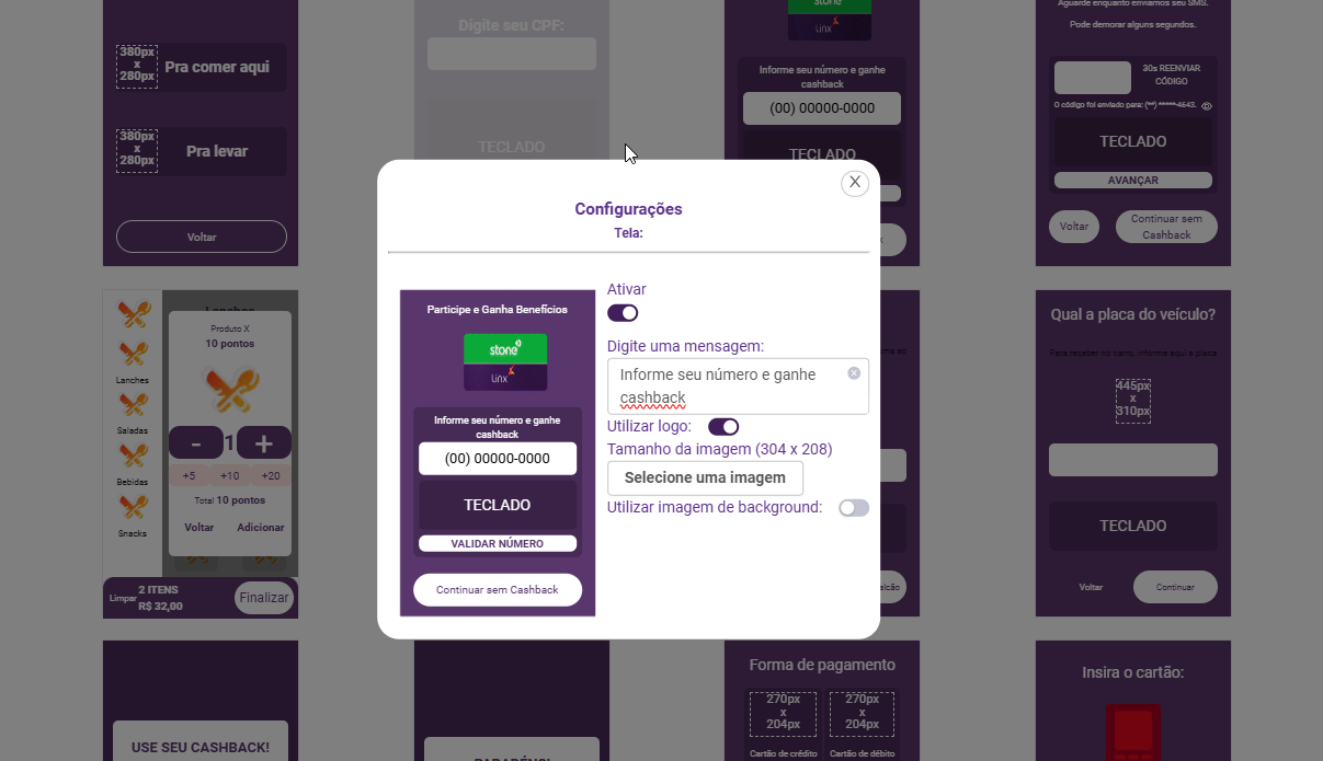 1. Na próxima tela, insira uma mensagem clara e objetiva que será exibida no PDV durante a solicitação do telefone do cliente.