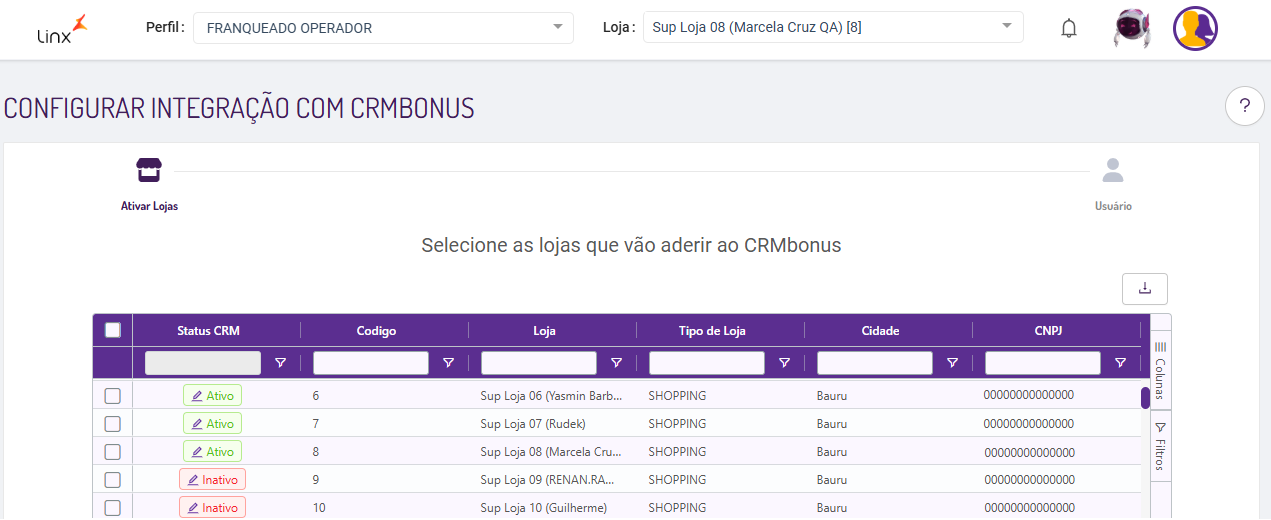 1. Esta etapa é responsável por habilitar as lojas que vão aderir ao programa de fidelidade.