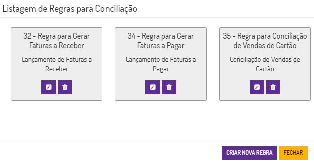 Grupo Parametrização de Regra para Conciliação de Vendas de Cartão