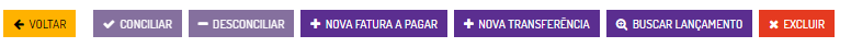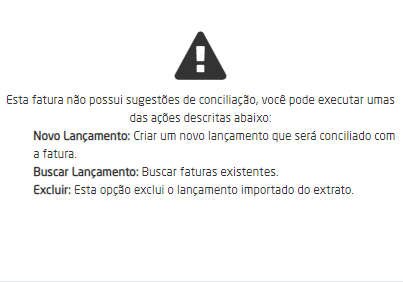 Quando não possuir sugestão de conciliação o sistema apresentará três alternativas: Novo Lançamento, Buscar Lançamento e Excluir.