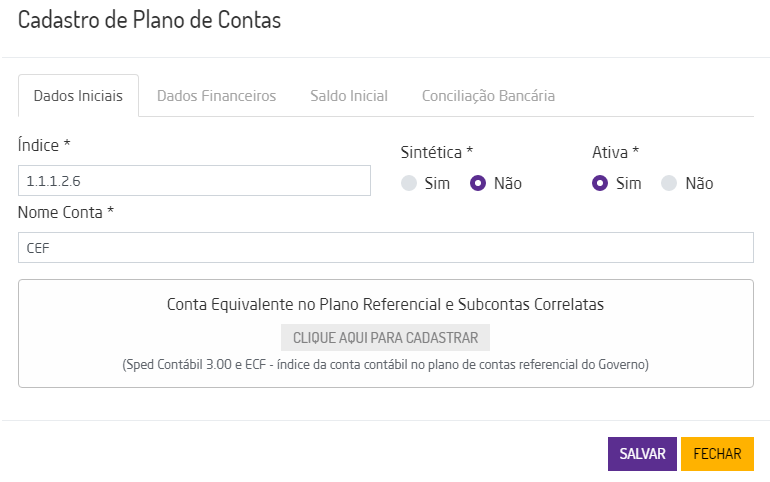 Em seguida, informe todos os Dados Inicias necessários em todas as abas e clique em "salvar".