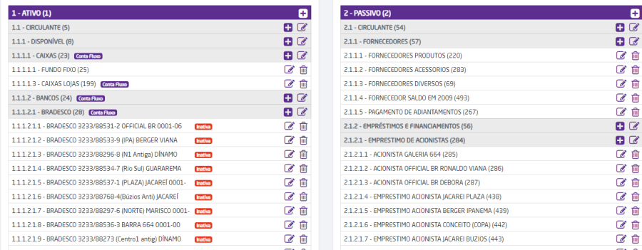 O sistema direcionará para a tela do plano de contas, então basta clicar no sinal de + para criar a conta: