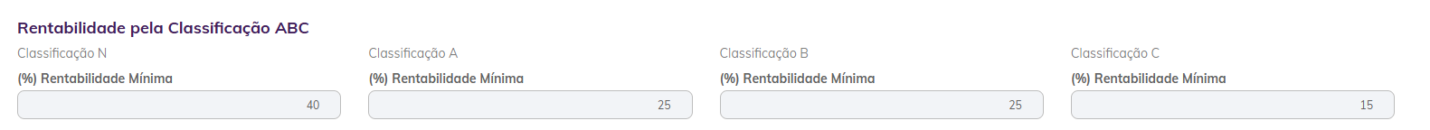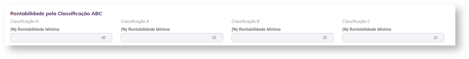 Para cálculo da Rentabilidade pela Classificação ABC, temos as opções conforme cada classificação: