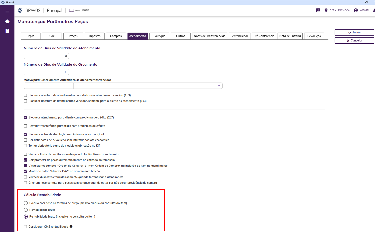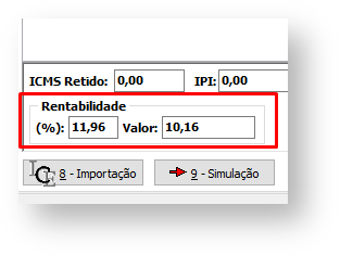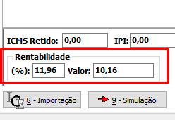 Rentabilidade Bruta: Calcula os impostos (ICMS) apenas no atendimento balcão e não calcula na consulta do item(Simulação).
