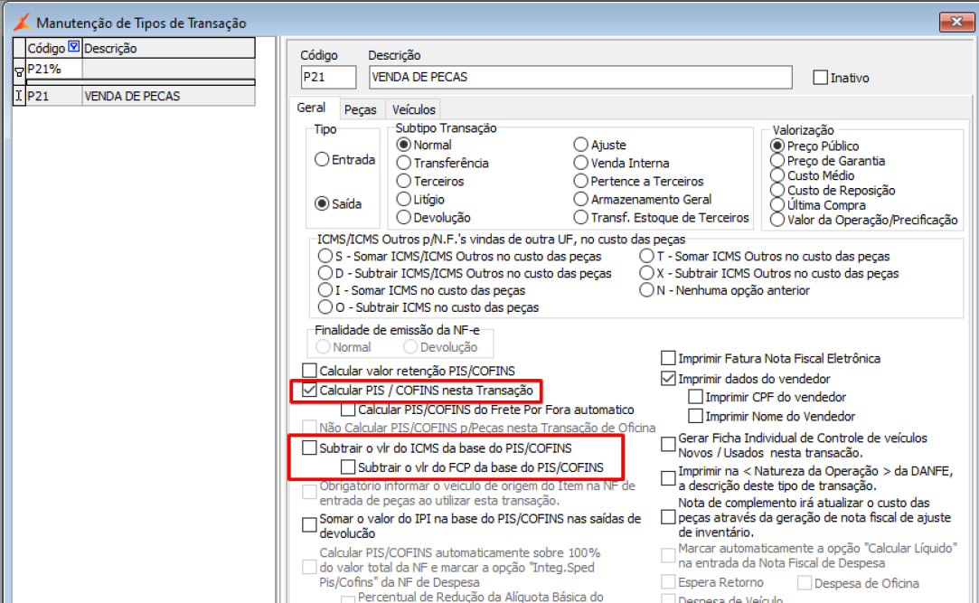 PIS E COFINS: Programa verifica se a transação calcula PIS/COFINS e se o item tem base de PIS/COFINS.